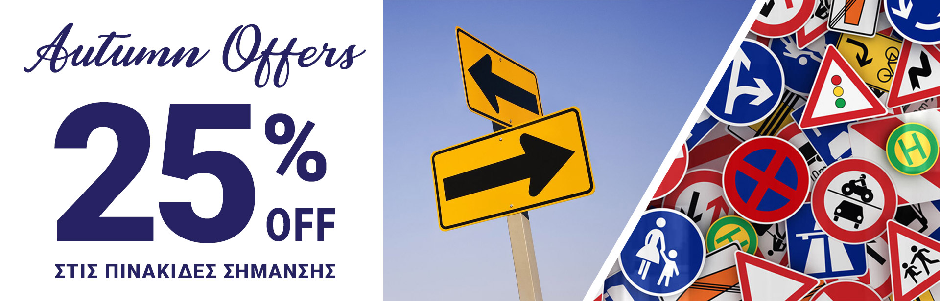 Επωφεληθείτε από εκπτώσεις -25% σε πινακίδες συμμόρφωσης, εγκαταστάσεων, κυκλοφορίας και καρτολίνες κρεμαστές.